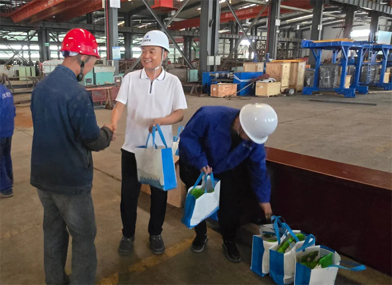 7月16日,裝備公司組織開展“夏送清涼”慰問活動(dòng)。黨委副書記、總經(jīng)理張立軍及分管領(lǐng)導(dǎo)深入生產(chǎn)車間一線,發(fā)放防暑降溫物資。